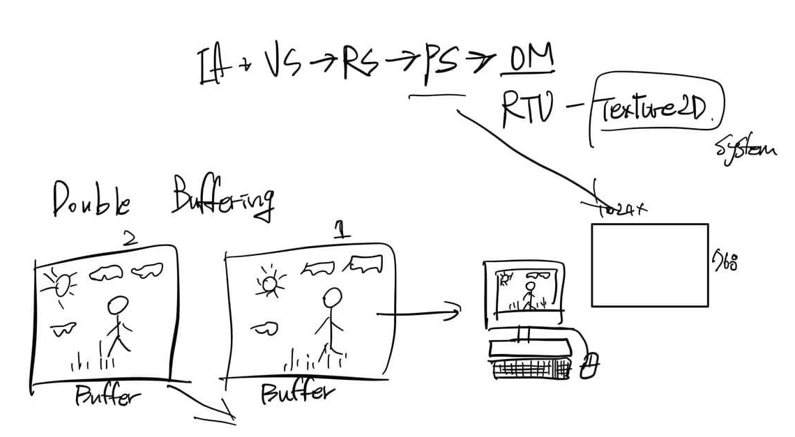처리결과를 Texture2D에 저장이 되고 상황에 따라 Buffer를 선택해서 double Buffering이 일어나서화면이 끊기지 않게 보여준다.