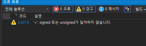 Signed 또는 Unsigned 가 일치 하지 않다. 라고뜸
