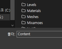2) 경로가 인식되면 콘텐츠 폴더의 다른 폴더에 바로 넣지 말고 콘텐츠 폴더로 지정합니다.